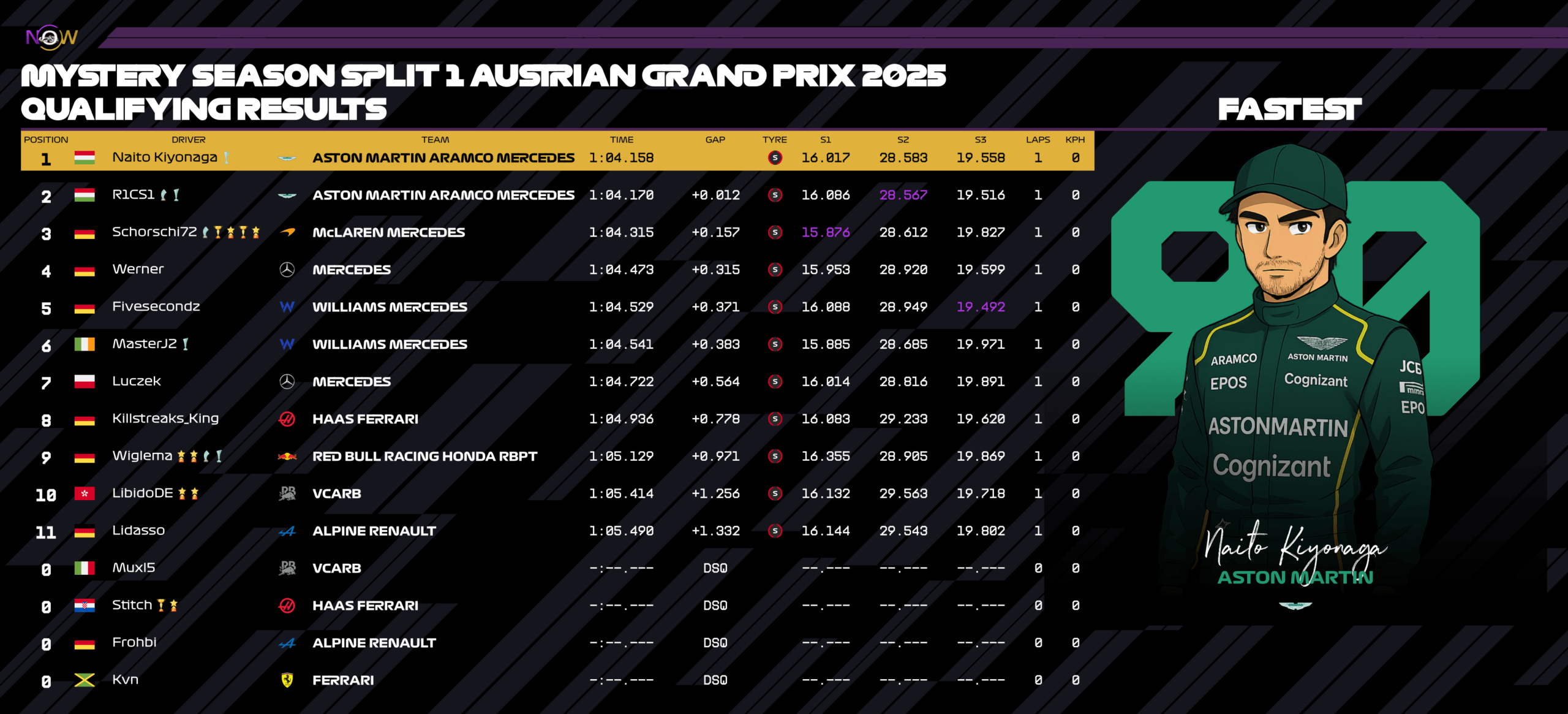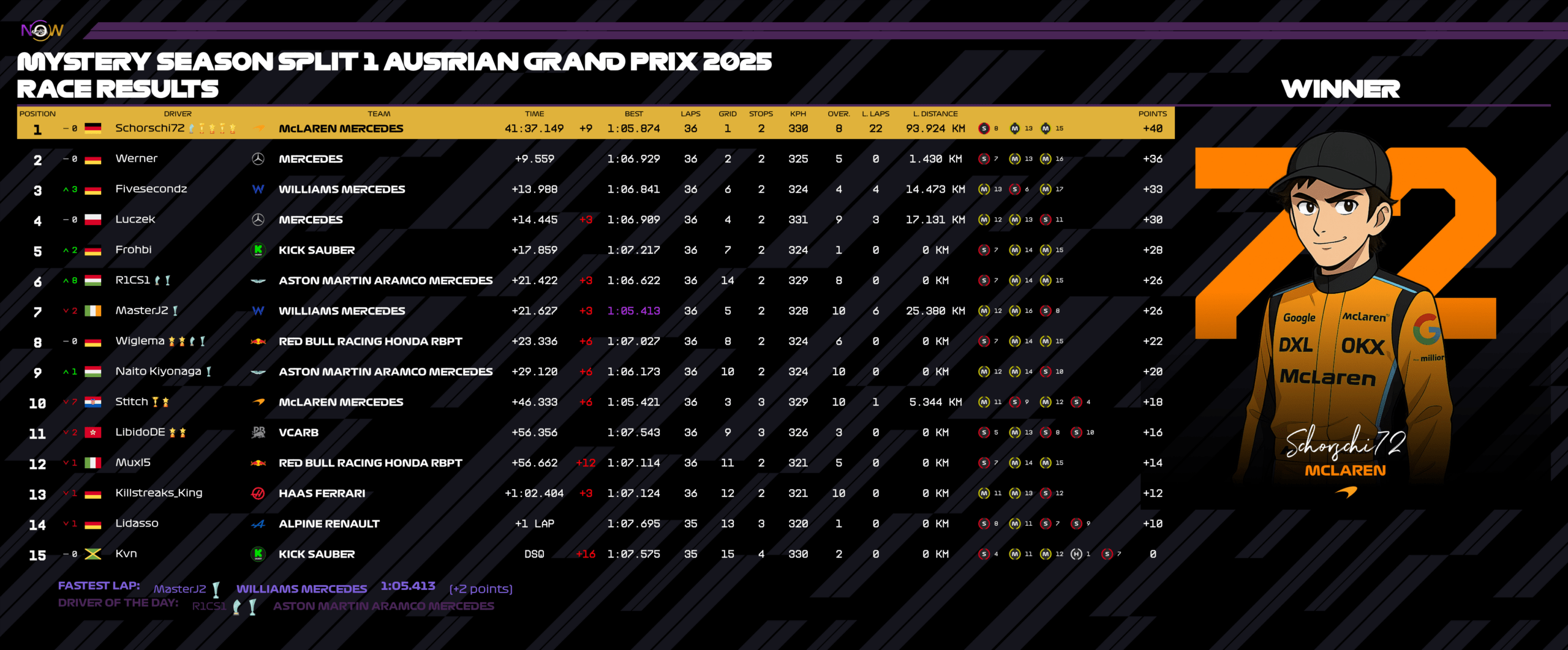 Startseite Regelwerk Fahrer & Teams Mystery-Season Regeln Mystery Season Split 1 WM Tabellen Fahrer-Statistik Rennkalender
